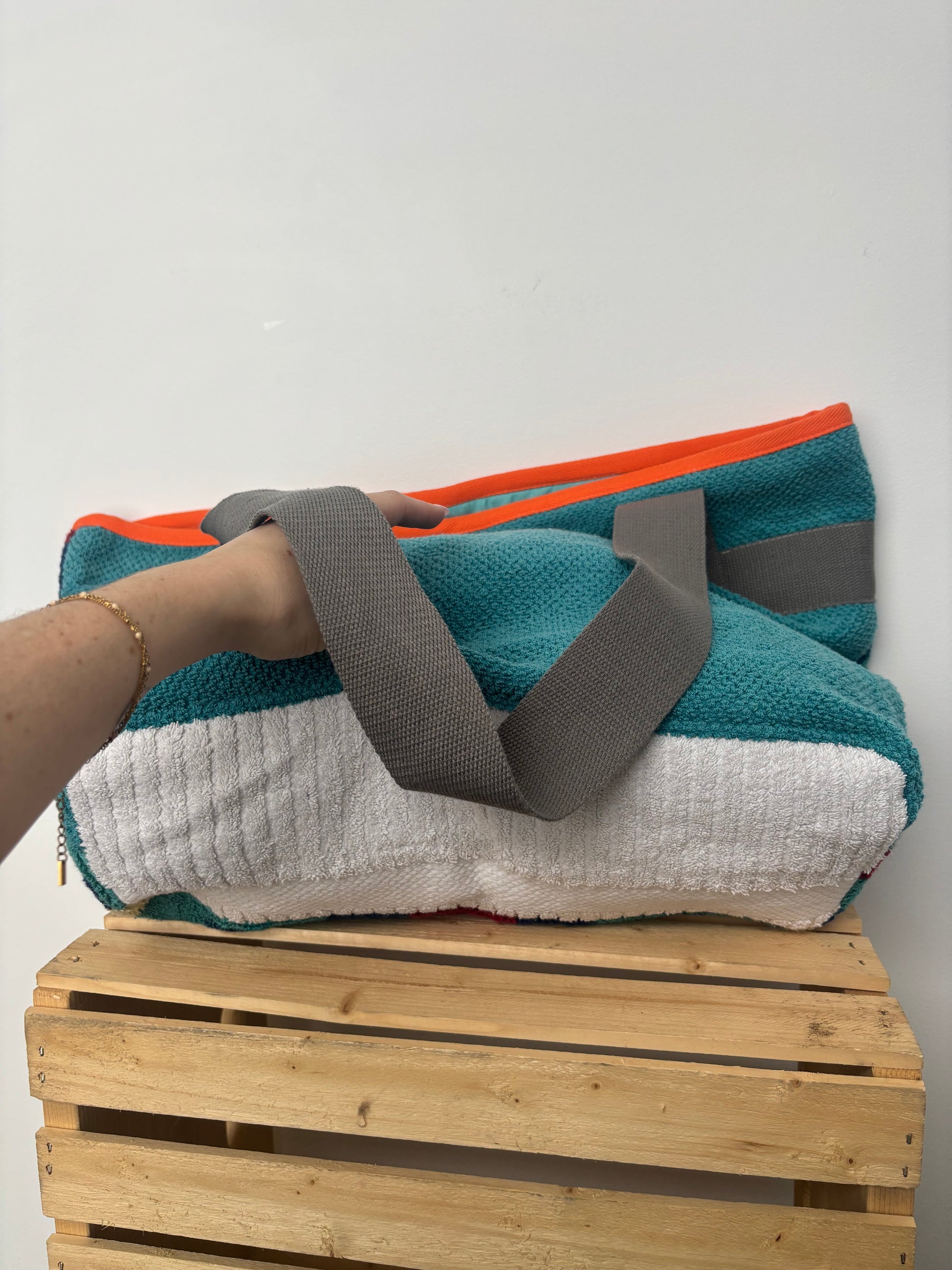 Chaque sac est confectionné à partir de serviettes recyclées, offrant une seconde vie à ces textiles tout en créant un produit unique et tendance. L'association de différents motifs et couleurs crée un aspect original, faisant de chaque sac une pièce individuelle.