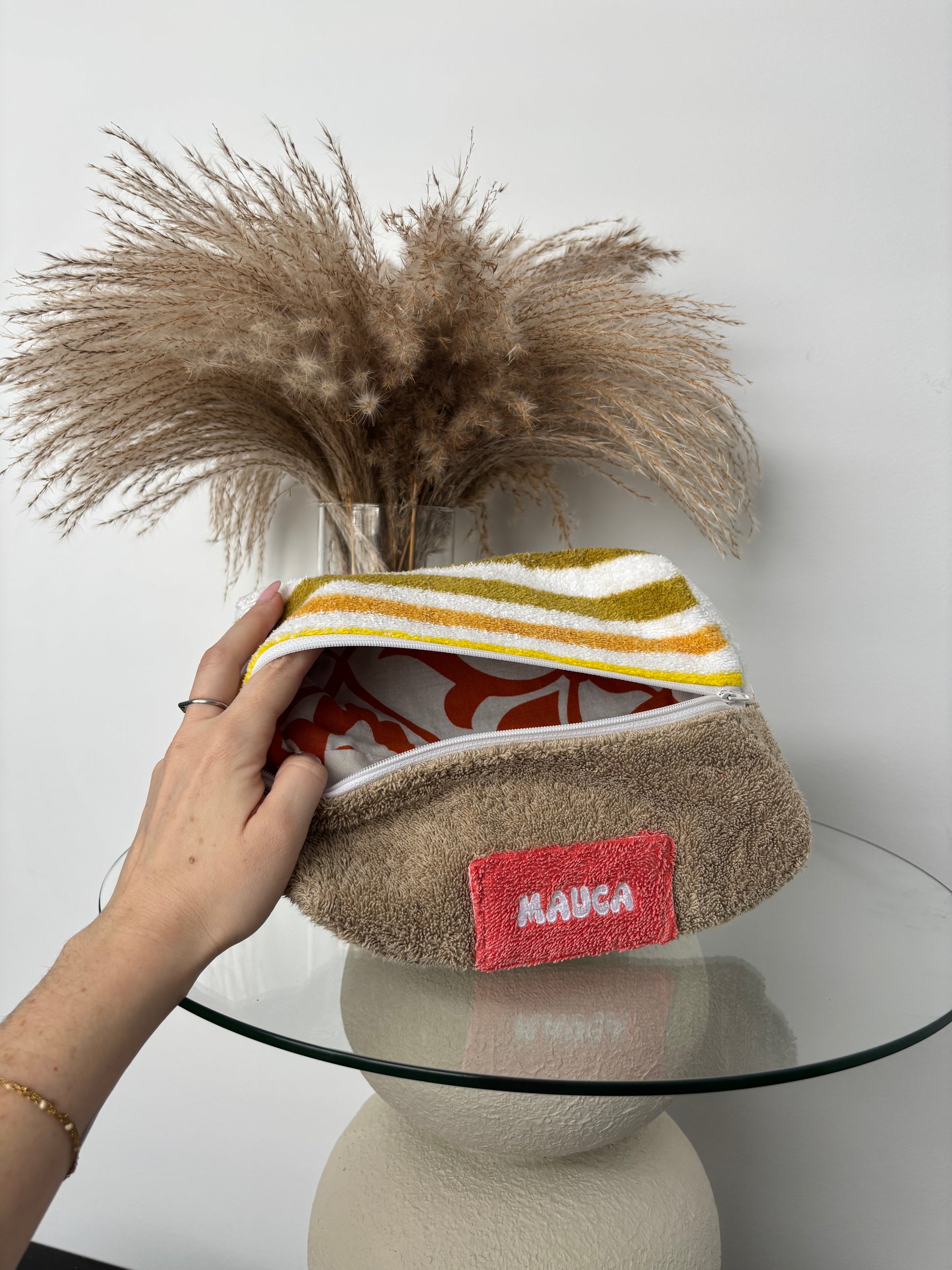Chaque trousse est confectionnée à partir de serviettes recyclées, offrant une alternative durable aux matériaux conventionnels. La texture douce de la serviette donne à la trousse une apparence délicate tout en étant résistante à l'usure quotidienne.